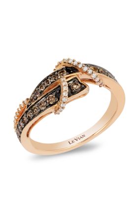 Rose Gold Levian Chocolate Diamond Rings - Le Vian 14k Rose Gold White And Chocolate Diamond Crisscross Ring 78 Ct Tw In Pink Lyst. Levian 14k rose gold round chocolate brown diamond multi row cocktail band ring. Le vian® is the only company on earth to make jewelry with chocolate diamonds®. vanilla diamonds® the journey of a diamond in the rough to the sparkling diamond design you love is a fascinating story, one that began billions of years ago, deep within the earth where a diamond has formed under extreme heat and pressure. Chocolate diamonds® , 1/15 cts. Chocolatier diamond ring (3/8 ct. $3,699 levian 14k rose gold chocolate 1.13ct white round diamond ring band sz 7.